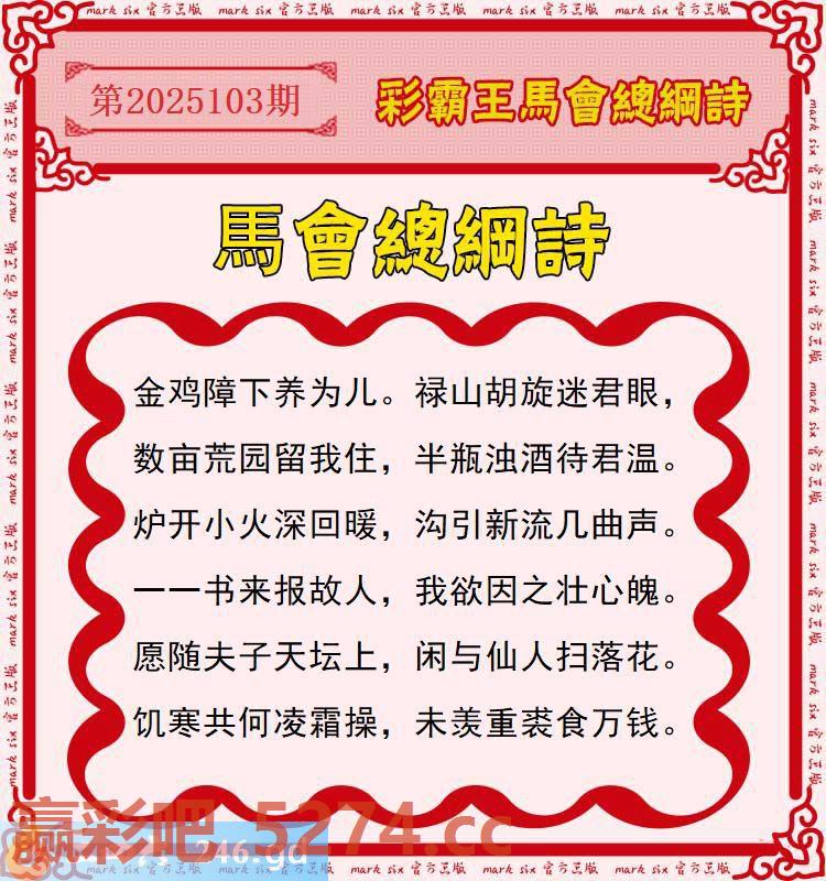 103期:彩霸王馬会总纲诗