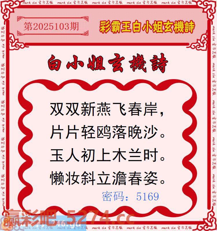 103期:彩霸王白小姐玄机诗