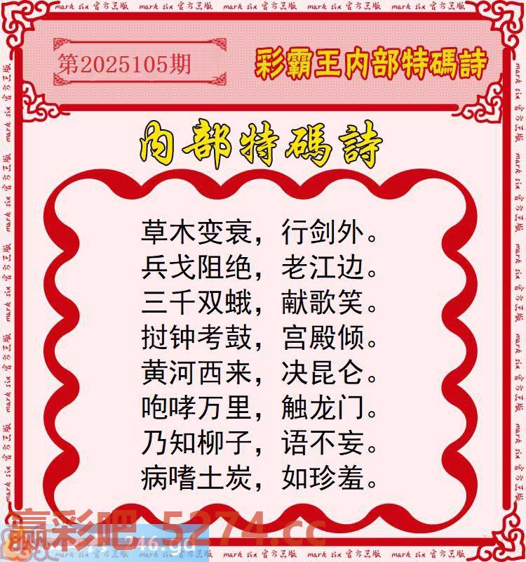 105期:彩霸王内部特码诗