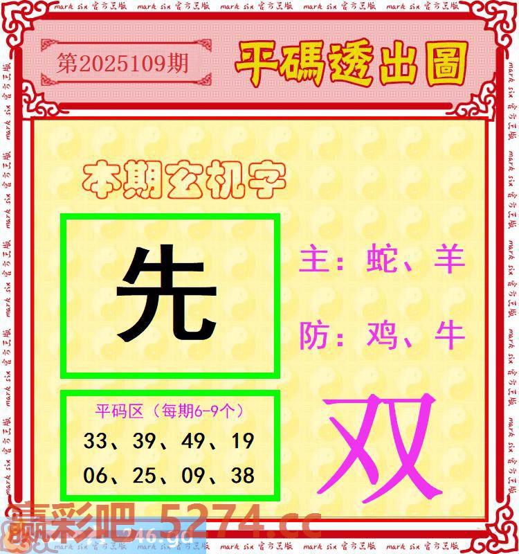 109期:玄机字+单双码+平码透出圖