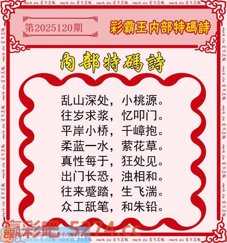 120期:彩霸王内部特码诗